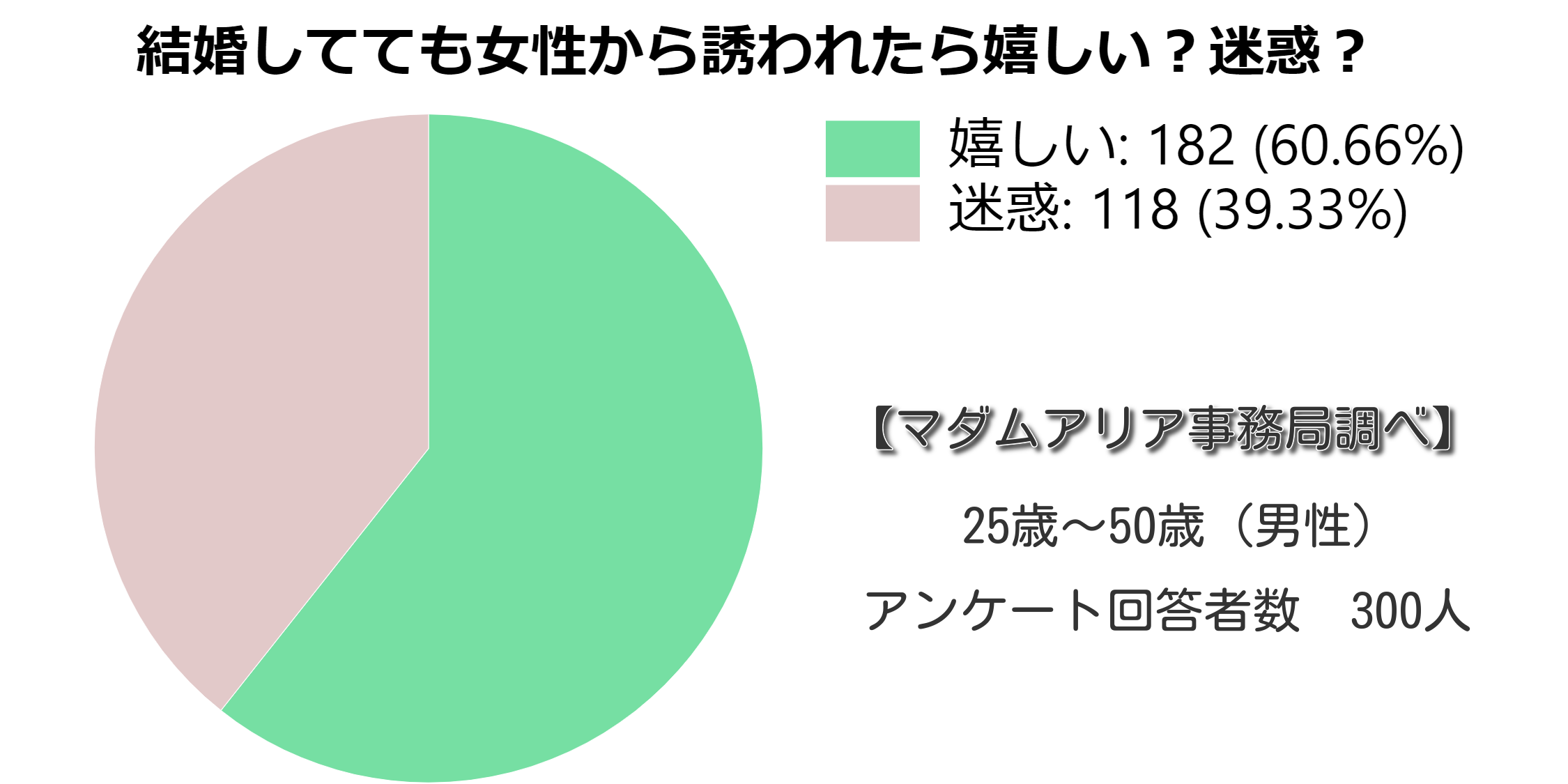 実際に、既婚者という立場で女性から誘われた時に「嬉しい」と思う男性は約60%で、迷惑だと感じている人の割合は約40%です。