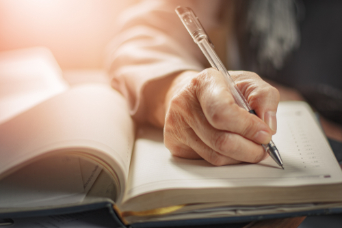 写真や物があれば利き手で持ちながら、ノートに向かってください。