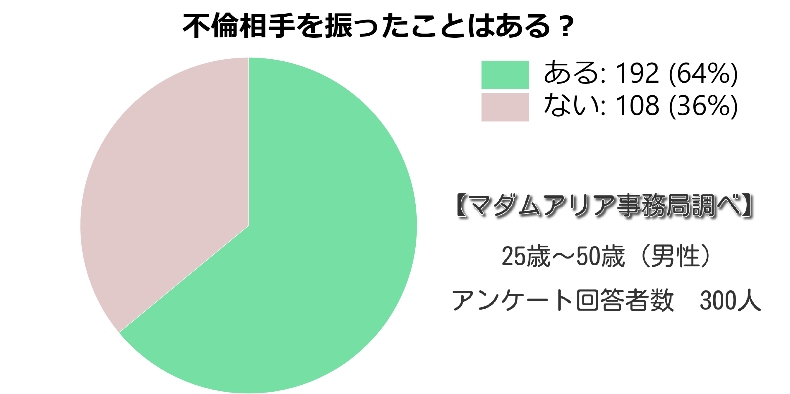 不倫相手の彼女を自分から振った経験のある既婚者男性は64%です。