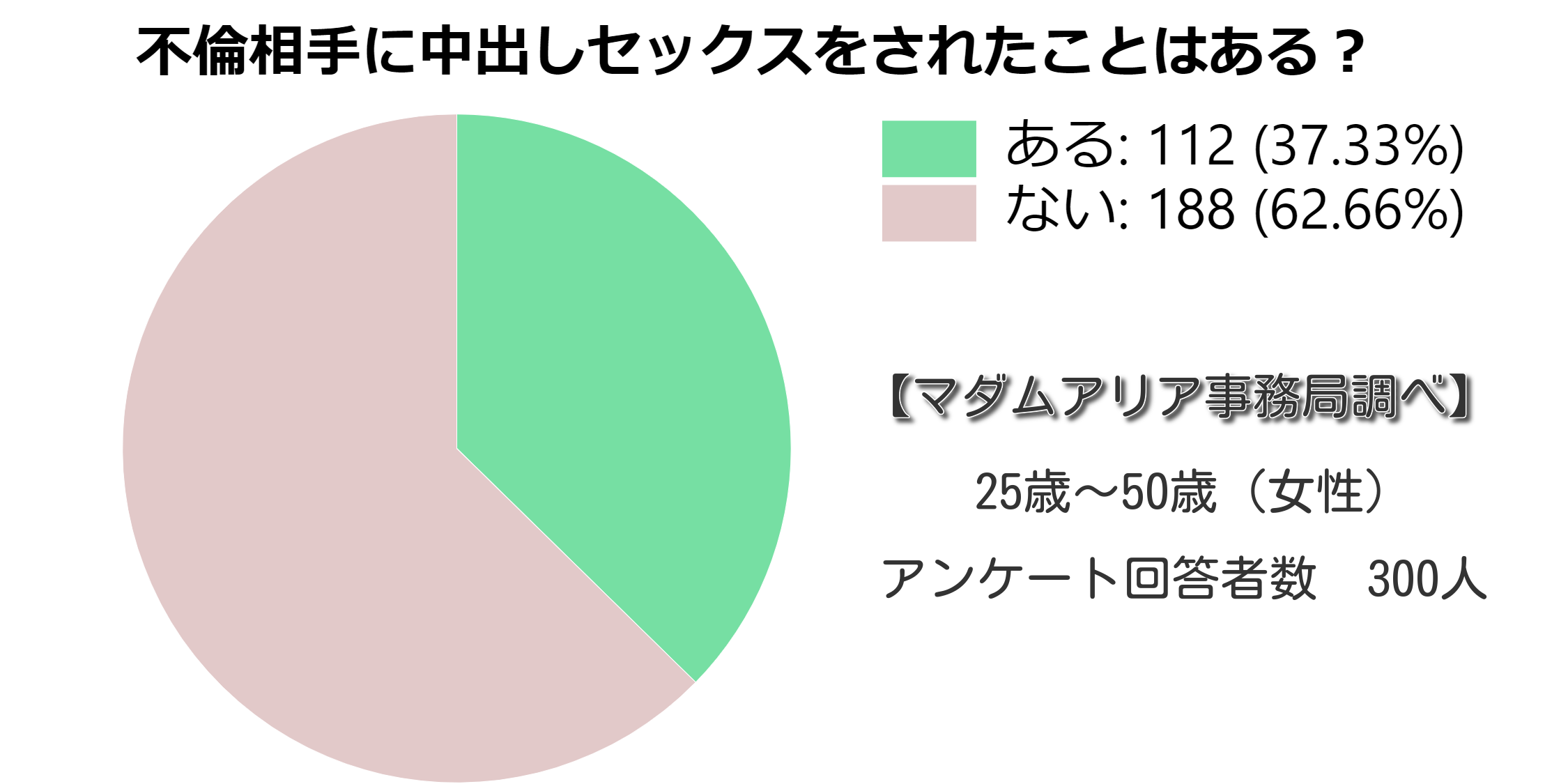 「不倫相手に中出しセックスをされたことはある?」とのアンケートは既婚男性と恋愛している、またはしていた女性に対して行われたものです。