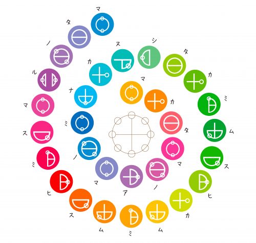 らせん状の文字で記されたカタカムナ文字。