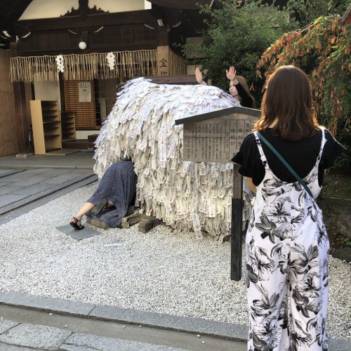 安井金比羅宮で縁切り縁結び碑をくぐろうと思っている時には、スカートなどは避けてください。